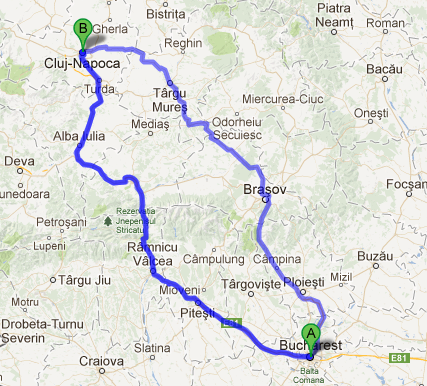 Cluj-Napoca is linked with Bucharest through the following main routes: