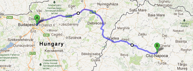 | Cluj-Napoca is linked with Budapest through highway M3 and European routes E79 and E60 (483 km).